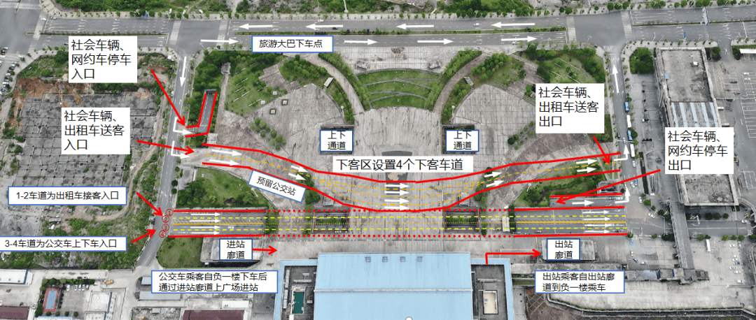 (二)都匀东高铁站完成改造后,车站乘车流线将正式调整,由原来的“下进上出”(即:负一楼进站、一楼出站),优化为“上进下出”(即:乘客从一楼进站,离站经出站廊道到负一楼乘车),详见后附示意图。